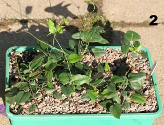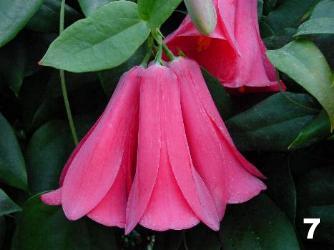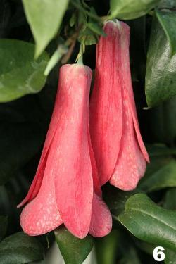 Lapageria comes from sea level forests in Chile and likes cool damp weather. This results in most of the plant’s growth being made in spring and autumn, and consequently the best time to pot the seedlings on is either spring or autumn. The seedlings shown in picture 2 were sown in September and the photograph taken the following September. The following year, I would hope to pot the plants on into 1litre deep pots – by which time the plants are 1½ - 2 years old. And the year after, when the plants are coming up to 3 years old, I would pot them into 15cm. full pots (1.8litre). At that stage, the plants should have some long stems which can be trained up a 1.2m cane. With a bit of luck, some of them will produce one or two flowers in late autumn. The remainder should do so the following year. |